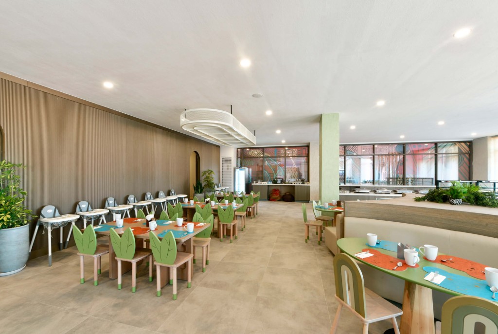 За децата: 2 детски ресторанта, открит и закрит басейн, аква парк със 7 водни пързалки, детски клуб.