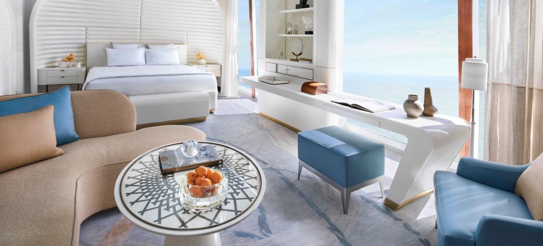 Джуниър суит Sea View Balcony съчетава елегантност и комфорт с просторна всекидневна и изчистен дизайн. Излезте на собствения си балкон и се насладете на впечатляваща гледка към Арабския залив за истински изискан морски престой.