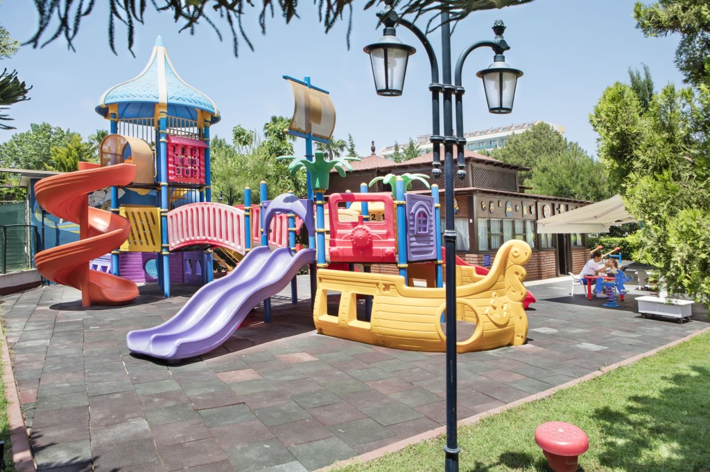 На територията на хотела: Основен ресторант (безглутенова закуска, диетичен, вегетариански и безглутенов бюфет за обяд и вечеря), 3 а ла карт ресторанта (турски, рибен и италиански - едно посещение на седмица е безплатно, предварителна резервация, от 15.05 до 30.09), 5 бара, дискотека, 2 открити басейна, закрит басейн, 3 водни пързалки, Спа център, лекарски кабинет, фризьорски салон, 3 конферентни зали, магазини.