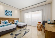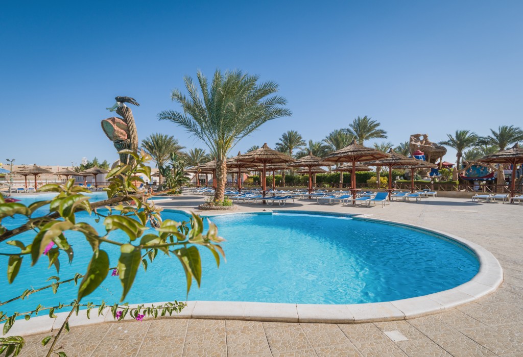 Разположение: Хотелът се намира в центъра на града. Наблизо има много ресторанти, барове и магазини. Има собствени водни пързалки. Препоръчваме го за младежки и семейни почивки с деца. Разположен e в самия център на Хургада и 10 км. от летището, на брега на морето. Състои се от комплекс от 3-, 4- и 5-етажни сгради. Обща площ: 71 875 м2.