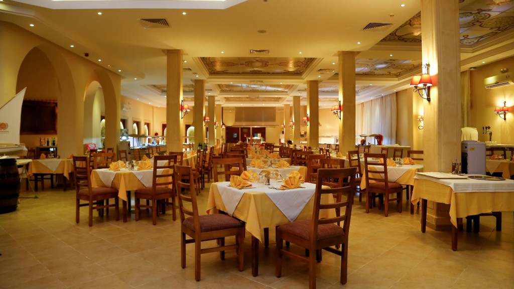 На територията на хотела: Основен ресторант Zeus, бар Horus, бар на плажа, барбекю ресторант Sindbad (късна закуска, обяд, дневни закуски), мавританско кафене Isis Cafe Maure (платено),диско (напитки срещу заплащане), открит басейн, закрит басейн (отворен през април и октомври), СПА център, денонощна рецепция, обменно бюро, магазин за сувенири, 3 тенис корта.